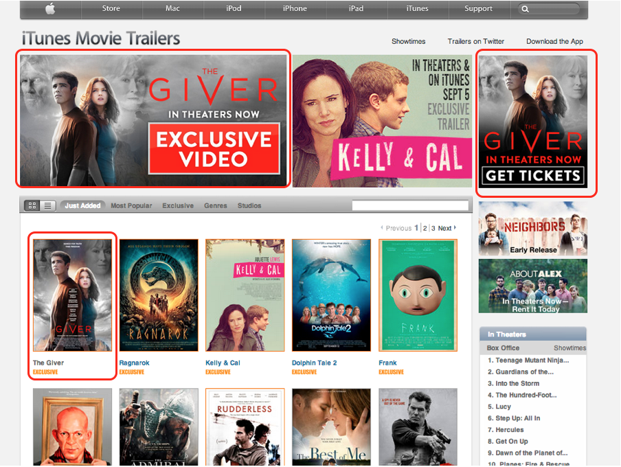 Throughout the Online PR campaign for the theatrical release of THE GIVER, Submersive organized a wide range of attention-grabbing promotions, including more than 15 exclusive content debuts, 35 interviews with members of the cast, 20 editorial features, 5 social chats, and over 700 individual articles.